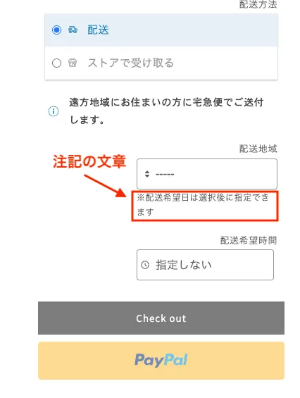 この設定をONにすることで、セレクトボックスをONにするまで配送日が表示されません。