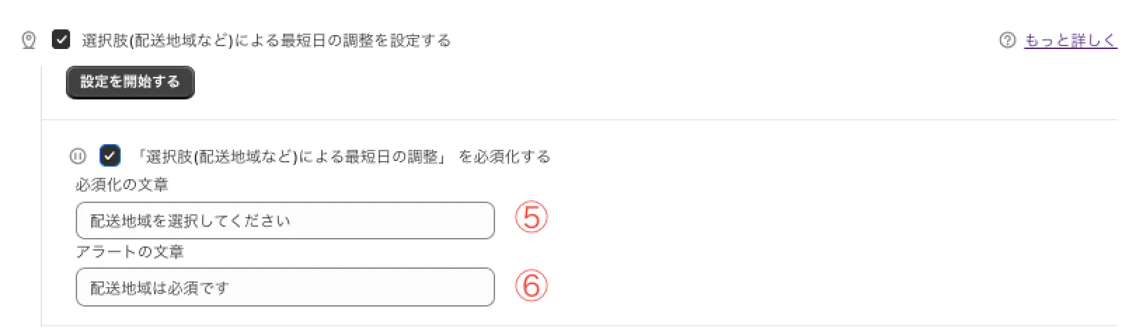 配送日時の必須化を選択することで、購入ボタンを押す前に配送日時の指定を必須にします。