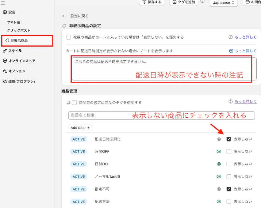 - 商品バリアント(予約商品、在庫の有無)毎に配送日時の設定を変更できますか?