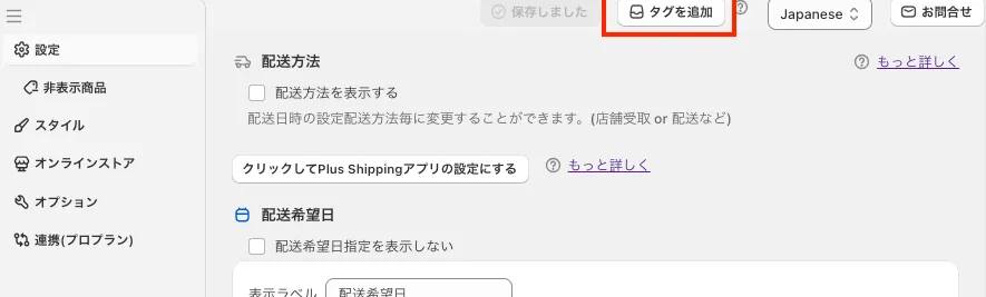 - 注文に配送日時指定のタグを追加