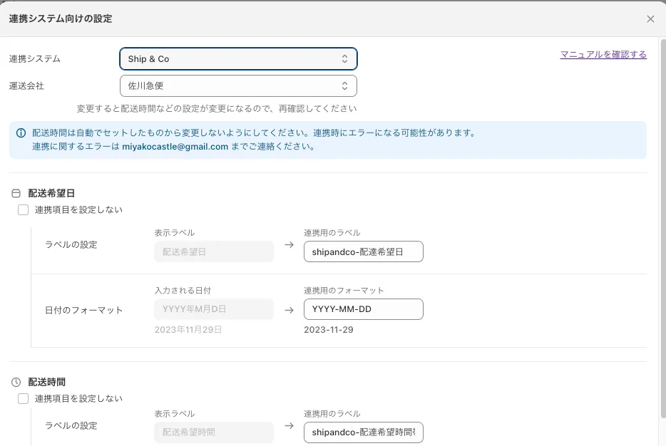 Ship&Co の設定の詳細は以下を参考にしてください。