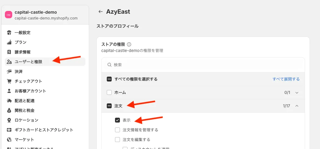 注文の読み込みのアクセス権が不足している可能性があります。ユーザーのアクセス権を確認してください。