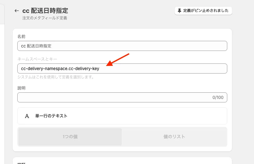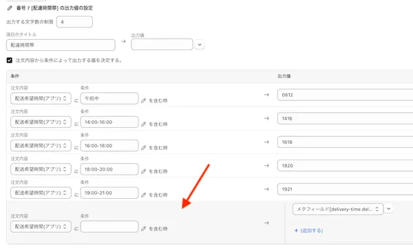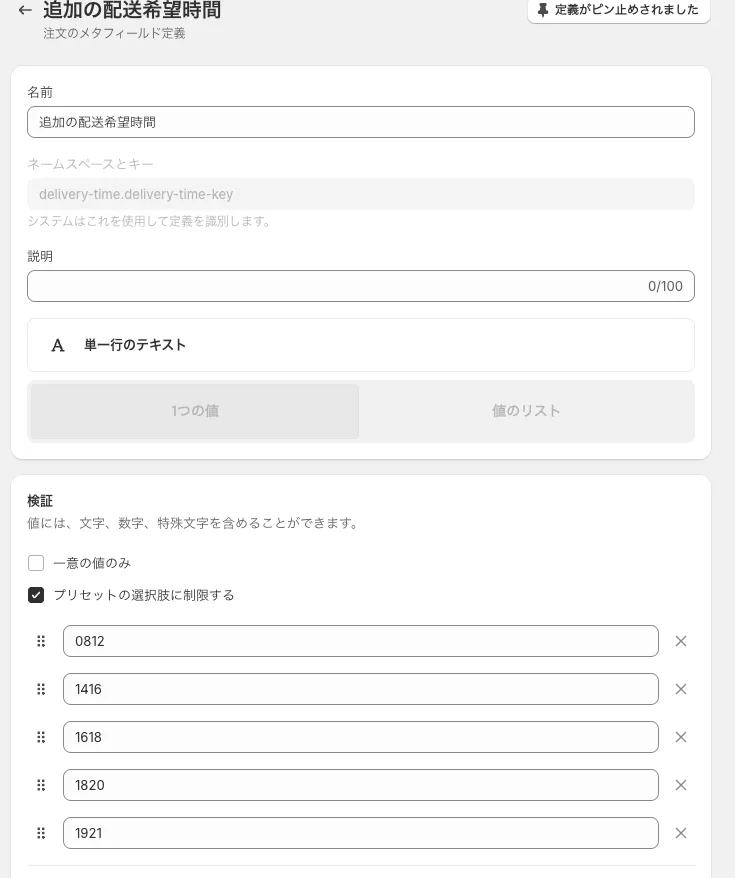 配送希望時間のメタフィールドを作成 -