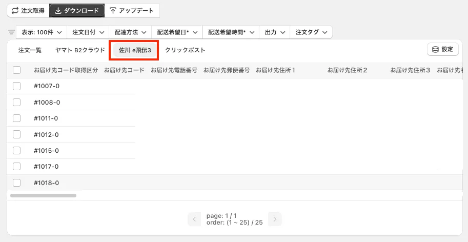 佐川急便に分割した注文
