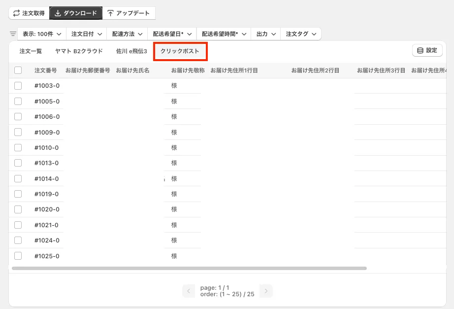 クリックポストに分割した注文