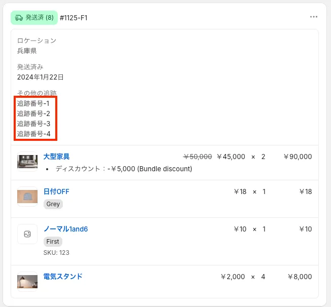 csvファイル (#1125の注文に対して”,“区切りで追跡番号を設定する)