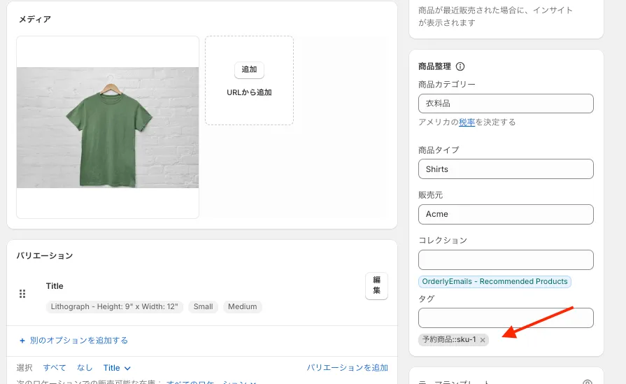 (商品タグ::SKU番号) を指定すると、その商品バリアントに対してのみ、選択するグループが適用されます。